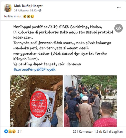 Foto ini kemudian viral di media sosial. 20200726 Foto viral jenazah pasien Covid-19 dalam peti yang dikubur masih memakai daster. BREAKING NEWS Hari Ini Positif Covid-19 di Sulawesi Utara Bertambah 18 Orang Total Ada 676 Kasus.